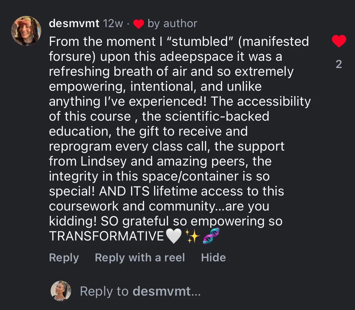 “I don't say this lightly. I completed a clinical doctorate, which I paid over 100K for, and I feel the same level of support at A Deep Space™ AND unlike most clinical programs, it’s trauma informed”