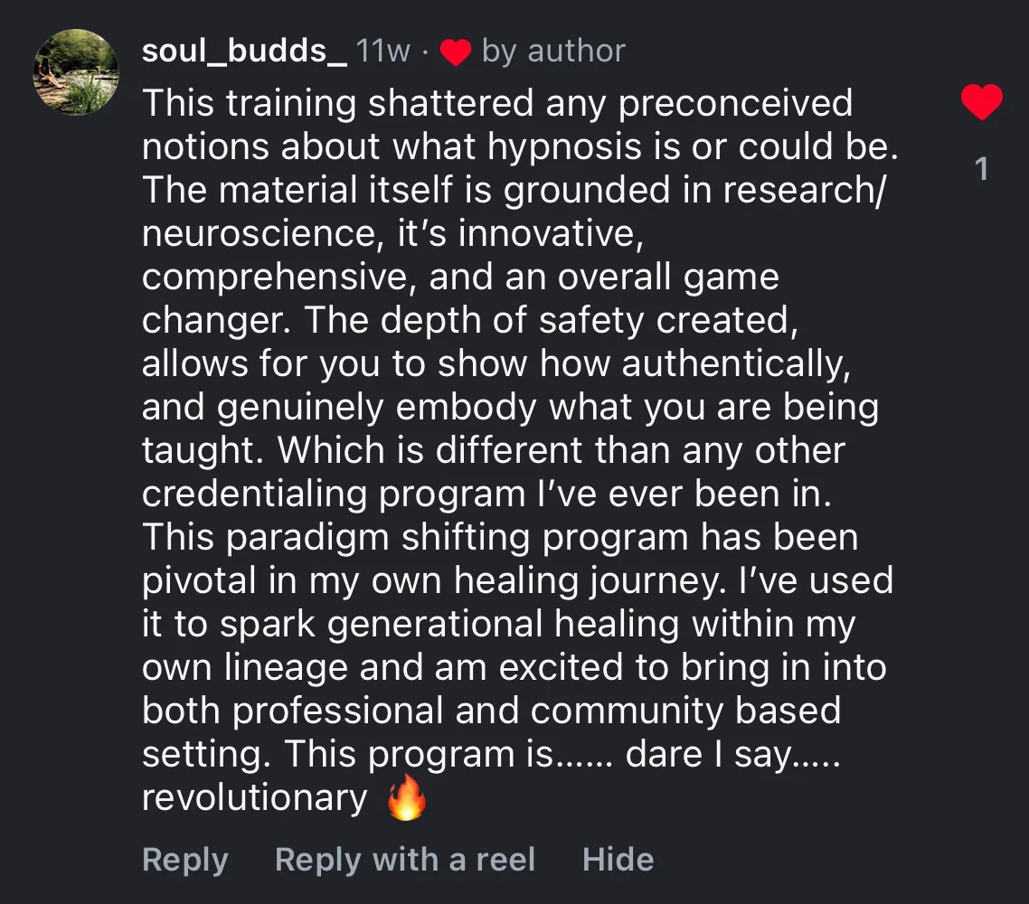 At A Deep Space™, we believe that real transformation requires a trauma-informed, client-centered, integrative approach. Our certification isn’t just about learning hypnosis—it’s about creating a sustainable practice that integrates subconscious healing, nervous system regulation, and client empowerment.